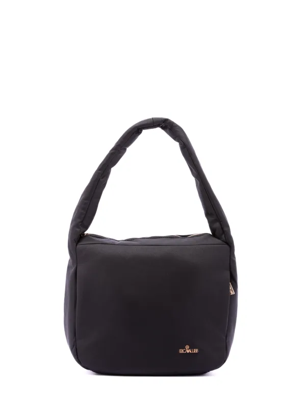 Damesschoudertas met ritssluiting. één met ritssluiting en twee open binnenzakken. twee zijritsen externe zakken. ontbrekende schouderband. in stoffen handvat. een binnencompartiment. extern materiaal. gevoerd met polyester binnenkant. Afmetingen: 33x30x12 cm. Modeproduct