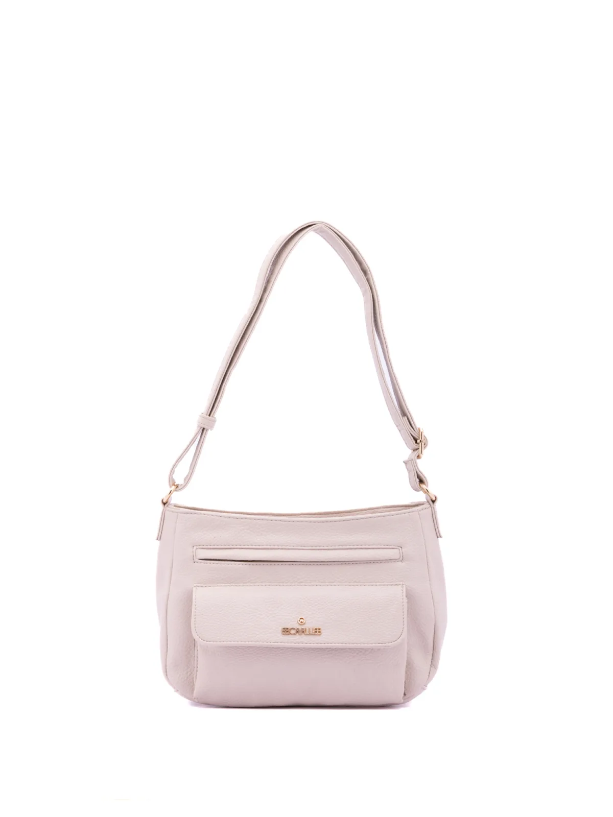 Damesschoudertas met ritssluiting. één met ritssluiting en twee open binnenzakken. één voorkant met ritssluiting en één voorkant met zak, externe zakken. ontbrekende schouderband. verstelbaar in eco-lederen handvat. een binnencompartiment. extern materiaal. gevoerd met polyester binnenkant. Afmetingen: 28x20x13 cm. Modeproduct