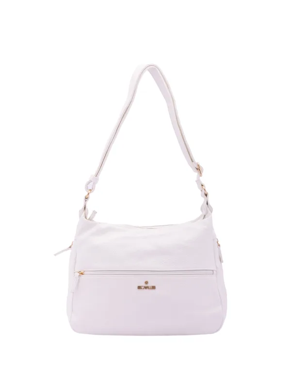 Damesschoudertas met ritssluiting. één met ritssluiting en twee open binnenzakken. één achterkant met externe zakken met ritssluiting. ontbrekende schouderband. verstelbaar in eco-lederen handvat. twee binnenvakken. extern materiaal. gevoerd met polyester binnenkant. Afmetingen: 35x26x11 cm. Modeproduct