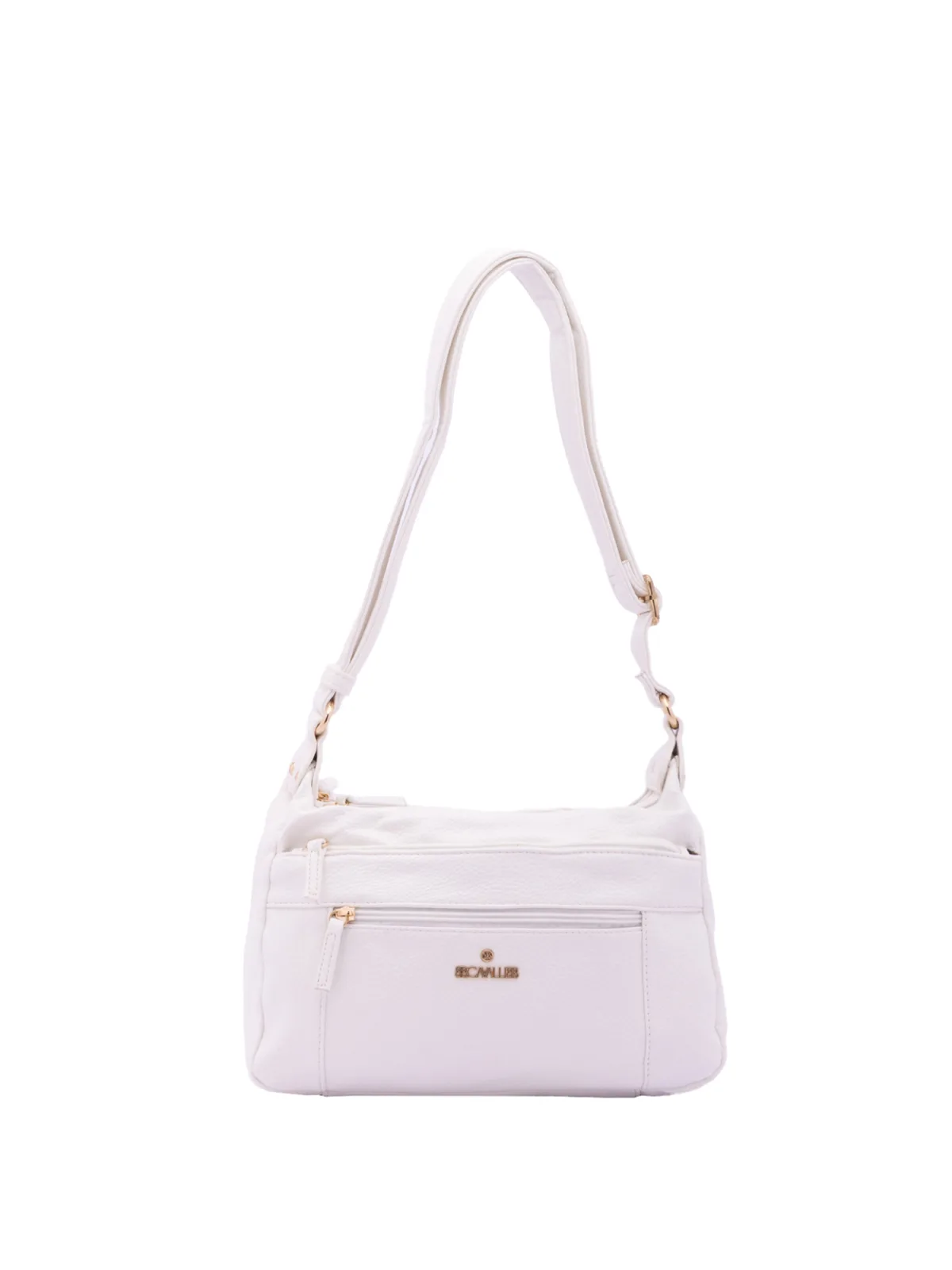 Damesschoudertas met ritssluiting. één met ritssluiting en twee open binnenzakken. twee vooraan met ritssluiting en één achteraan met externe zakken met ritssluiting. ontbrekende schouderband. verstelbaar in eco-lederen handvat. twee binnenvakken. extern materiaal. gevoerd met polyester binnenkant. Afmetingen: 30x20x10 cm. Modeproduct