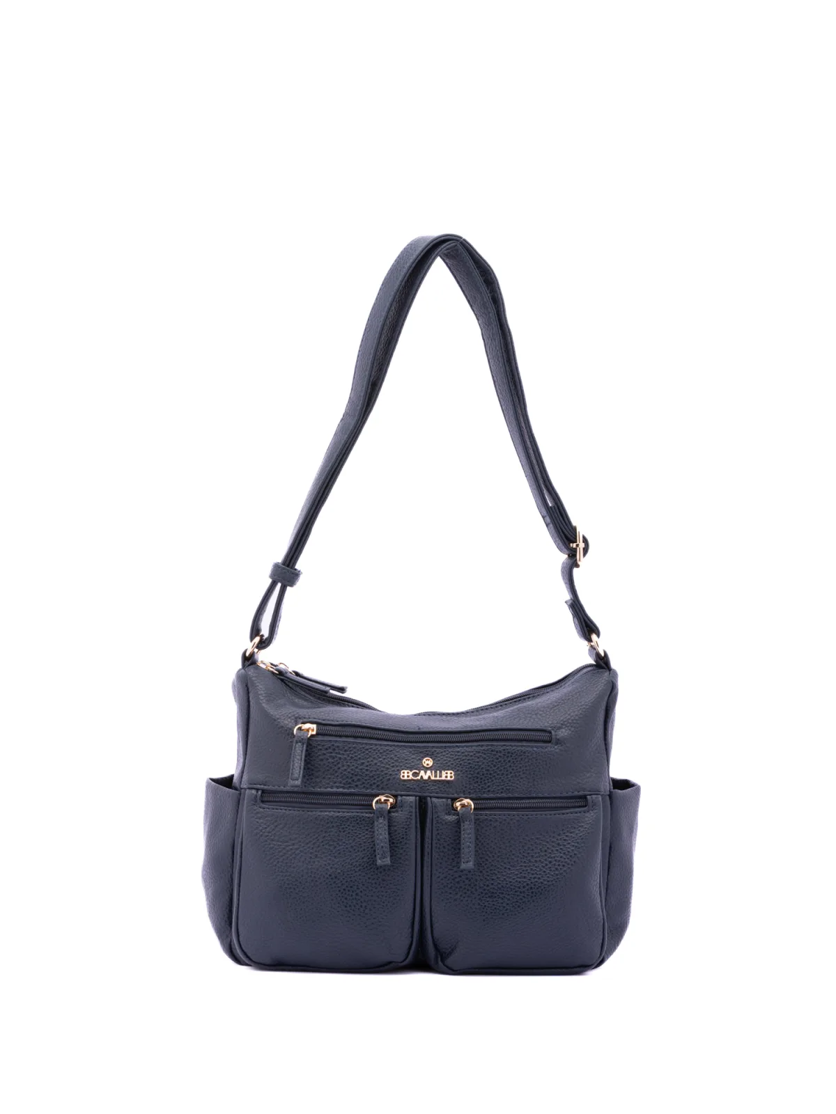 Damesschoudertas met ritssluiting. één met ritssluiting en twee open binnenzakken. drie aan de voorkant met ritssluiting, twee aan de zijkanten open en één aan de achterkant met externe zakken met ritssluiting. ontbrekende schouderband. verstelbaar in eco-lederen handvat. twee binnenvakken. extern materiaal. gevoerd met polyester binnenkant. Afmetingen: 30x21x12 cm. Modeproduct