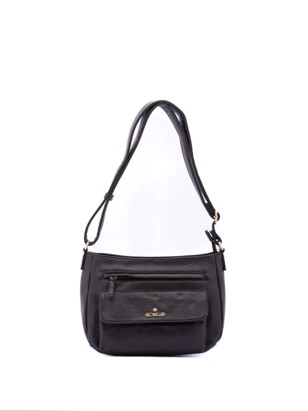Damesschoudertas met ritssluiting. één met ritssluiting en twee open binnenzakken. één voorkant met ritssluiting en één voorkant met zak, externe zakken. ontbrekende schouderband. verstelbaar in eco-lederen handvat. een binnencompartiment. extern materiaal. gevoerd met polyester binnenkant. Afmetingen: 28x20x13 cm. Modeproduct