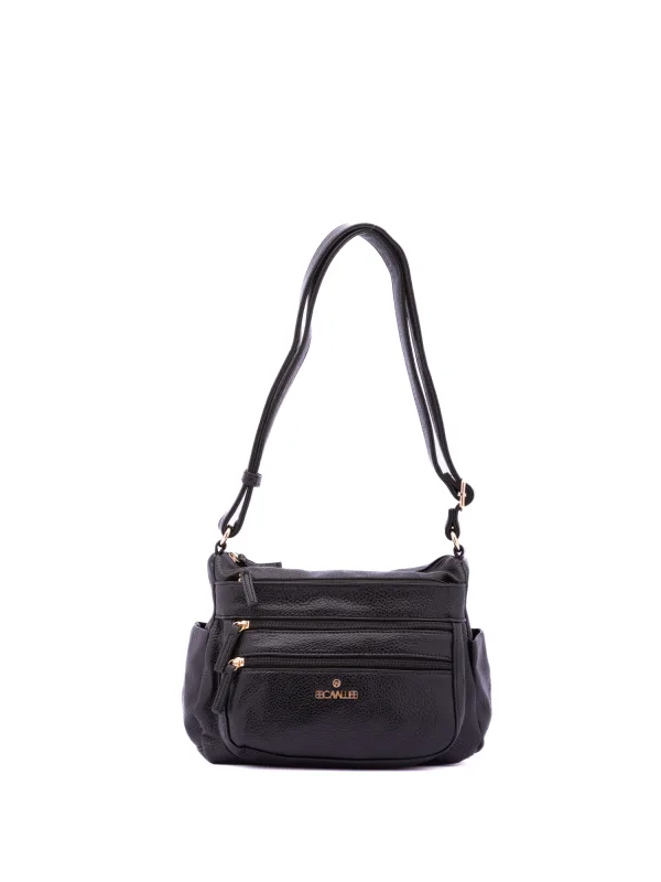 Damesschoudertas met ritssluiting. één met ritssluiting en twee open binnenzakken. drie aan de voorkant met ritssluiting, twee aan de zijkanten open en één aan de achterkant met externe zakken met ritssluiting. ontbrekende schouderband. verstelbaar in eco-lederen handvat. twee binnenvakken. extern materiaal. gevoerd met polyester binnenkant. Afmetingen: 27x20x14 cm. Modeproduct