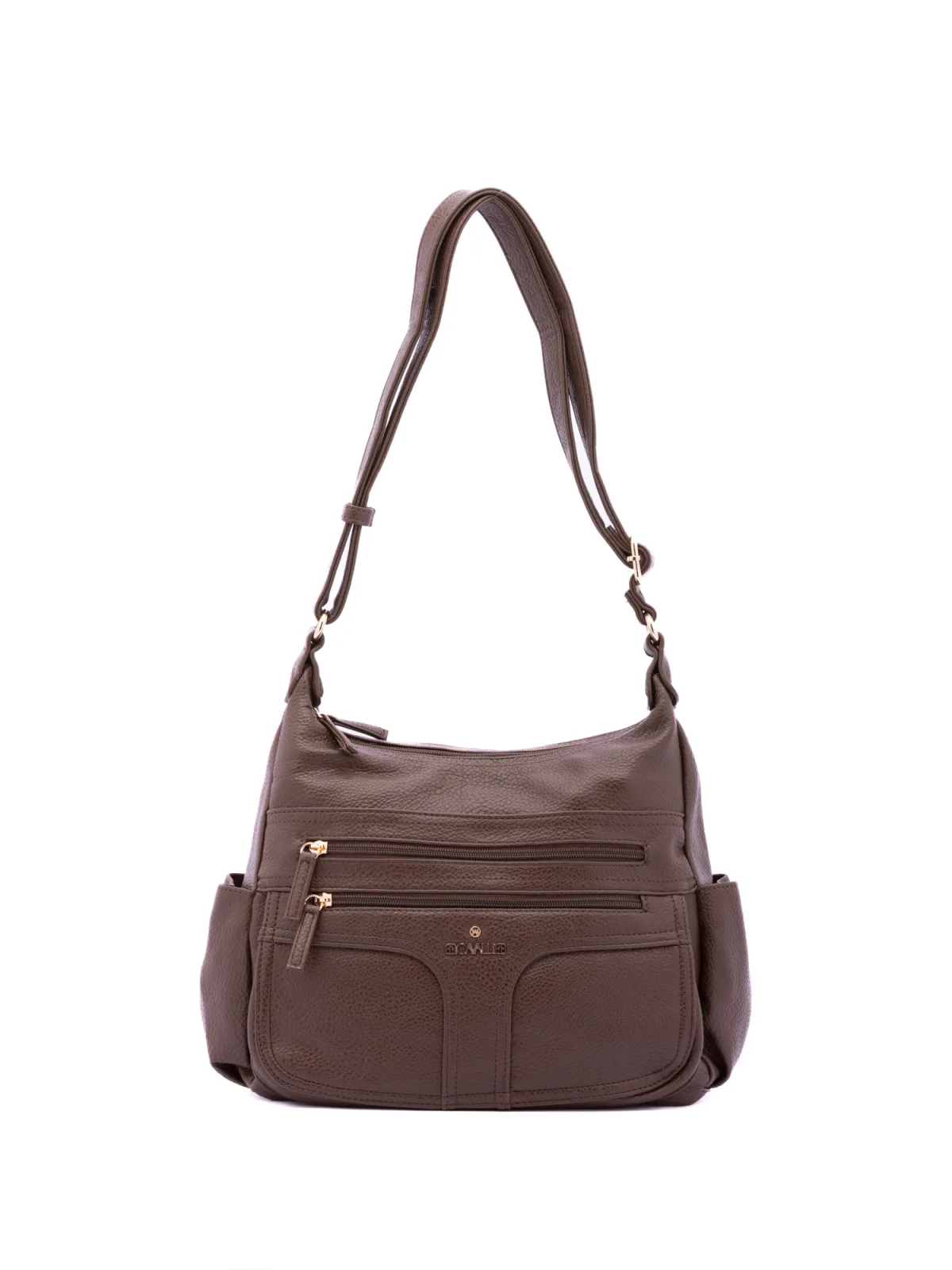 Damesschoudertas met ritssluiting. één met ritssluiting en twee open binnenzakken. twee aan de voorkant met ritssluiting, twee aan de zijkant met magnetische knoop en één aan de achterkant met externe zakken met ritssluiting. ontbrekende schouderband. verstelbaar in eco-lederen handvat. twee binnenvakken. extern materiaal. gevoerd met polyester binnenkant. Afmetingen: 33x25x14 cm. Modeproduct