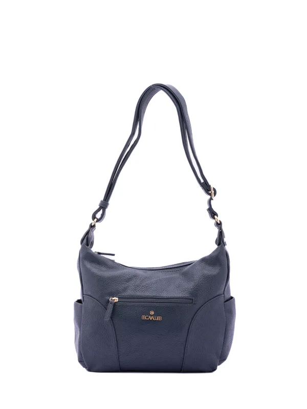 Damesschoudertas met ritssluiting. één met ritssluiting en twee open binnenzakken. één voorkant met ritssluiting, twee open zijkanten en één achterkant met externe zakken met rits. ontbrekende schouderband. verstelbaar in eco-lederen handvat. twee binnenvakken. extern materiaal. gevoerd met polyester binnenkant. Afmetingen: 30x21x11 cm. Modeproduct