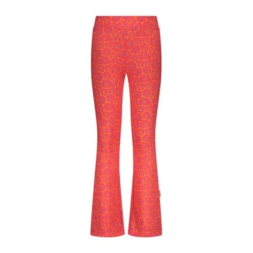 De flared broek van B.Nosy, stijlnaam Pepper, heeft een regular waist en is er in een opvallende kleurencombinatie van felroze, lila en oranje. De elastische tailleband zorgt voor comfort en een goede pasvorm. Gemaakt van polyester.