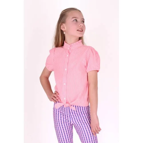 Deze roze gestreepte meisjes blouse van B.Nosy is een vrolijk everyday item voor schooldagen, feestjes en alles daartussenin. De roze/witte streep geeft een frisse look, terwijl de opstaande kraag en de knoopsluiting aan de voorkant zorgen voor een verzorgde uitstraling. Door de korte mouwen met pofeffect en de subtiele ruches krijgt de blouse een speels karakter dat makkelijk te combineren is met een jeans, rok of short.Verzorgde details voor elke dag Gemaakt van 70% katoen, wat zacht aanvoelt en prettig draagt op de huid Korte pofmouwen en ruches voor een speelse, meisjesachtige look Opstaande kraag en knoopsluiting aan de voorkant voor een nette afwerking Roze/witte streepprint die goed past bij verschillende onderstukken Onderdeel van de B.Nosy Daily collectie, geschikt van peuter en kleuter tot tiener Wasbaar op 30 graden en lauw strijkbaar (1 punt) Niet drogen in de droogtrommel om de vorm en kleur mooi te houdenMakkelijk te stylen meisjes blouseDe blouse past goed bij een denim short of skinny jeans voor een ontspannen look, maar staat ook mooi op een effen rok voor een wat gekledere outfit. Door de lichte stof is dit een fijne keuze voor schooldagen en warme seizoenen. Een paar sneakers of sandaaltjes erbij en de outfit is compleet.B.Nosy: speelse kinderkleding met oog voor detailB.Nosy staat bekend om kinderkleding met frisse kleuren, opvallende details en een comfortabele pasvorm. De collecties sluiten aan bij het actieve leven van kinderen, met kleding die er verzorgd uitziet en tegelijk prettig draagt. Zo krijgt jouw kind de ruimte om te spelen, ontdekken en zichzelf te laten zien.Een fijne blouse voor elke dag waarop stijl en comfort mogen samenkomen.