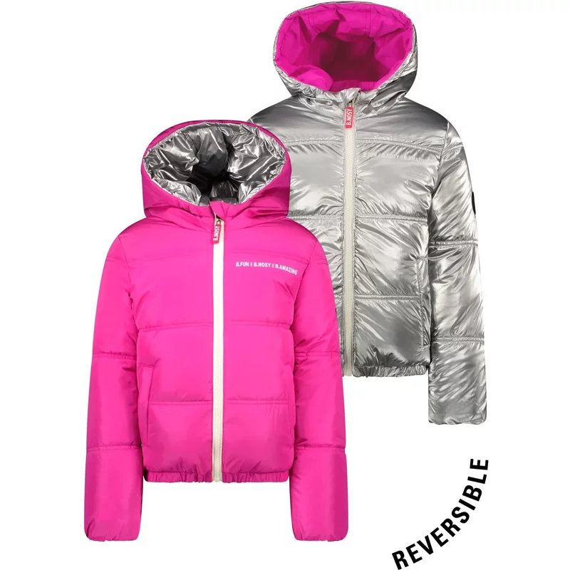 B.Nosy Meisjes reversibel winterjas – Jacky – Knock out roze Materiaal 100% RPE