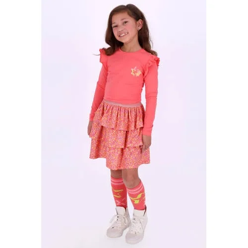 Deze B.Nosy meisjesjurk Dally in zoetroze is een comfortabele keuze voor elke dag. De jurk heeft een all over print en een speelse stokenrok, waardoor er veel beweging in het model zit. Door de midi-lengte valt de jurk praktisch en fijn te dragen op school, tijdens een feestje of gewoon thuis. De ronde hals en rechte lange mouwen maken het een toegankelijke jurk voor verschillende seizoenen.Zoetroze jurk met speelse stokenrok Zoetroze kleur met all over print voor een levendige uitstraling Stokenrok die zorgt voor een luchtig en zwierig effect Elastische tailleband voor een comfortabele pasvorm rondom de taille Gemaakt van 95% katoen en 5% elastaan, wat zacht aanvoelt en licht meerekt Ronde hals en rechte lange mouwen voor makkelijk combineren met vest of jasje Ruches als subtiele extra details aan het ontwerp Geen zakken, waardoor de rok mooi in model blijftZo draag je de Dally jurkDe midi jurk is prettig te stylen met sneakers voor een alledaagse look of met laarsjes voor een meer aangeklede outfit. In koudere maanden is een legging of maillot eronder praktisch, samen met een warm vest of cardigan. De elastische tailleband zorgt dat de jurk goed blijft zitten tijdens spelen en bewegen.B.Nosy voor speelse kidsB.Nosy staat voor kinderkleding met kleur en aandacht voor fijne details. Het merk combineert draagcomfort met opvallende prints en doordachte pasvormen, zodat kinderen vrij kunnen bewegen en zich prettig voelen in wat zij dragen.Een jurk die elke dag weer makkelijk uit de kast gepakt wordt.