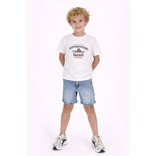 Het B.Nosy T-shirt jongens Timmy is een praktische basic voor elke dag met een opvallende backprint. De voorkant is eenvoudig wit, terwijl de print aan de achterkant zorgt voor een duidelijk accent. Door de korte mouwen en ronde hals is dit shirt goed te combineren met een jeans, short of jogger, het hele jaar door.Praktische details voor elke dag Gemaakt van 100% katoen, voelt zacht aan op de huid en is geschikt voor dagelijks dragen Korte mouwen en een ronde hals voor een comfortabele pasvorm Witte kleur met backprint voor een rustige voorkant en een opvallende achterkant Geen sluiting en geen zakken, waardoor het shirt snel aan en uit gaat Geschikt voor peuters, kleuters, schoolkinderen en tieners dankzij de brede maatboog Onderhoudsvriendelijk: wasbaar op 30 graden, lauw strijkbaar en niet geschikt voor de droogtrommelVoor school, speelafspraak en weekendDit Timmy T-shirt uit de Daily collectie is gemaakt voor alle momenten tussendoor. Geschikt voor naar school, een middag buitenspelen of een ontspannen weekend thuis. Draag het los op een broek in de zomer of onder een vest of hoodie wanneer het frisser is.B.Nosy: speelse kinderkleding met oog voor detailB.Nosy staat bekend om kinderkleding met opvallende details en comfortabele pasvormen. Elk item is gemaakt om vrij in te kunnen bewegen en past bij het actieve leven van kinderen. Met dit T-shirt kies je voor een kledingstuk dat prettig zit en praktisch is in het dagelijks gebruik.Een eenvoudig te combineren T-shirt dat in veel situaties van pas komt.