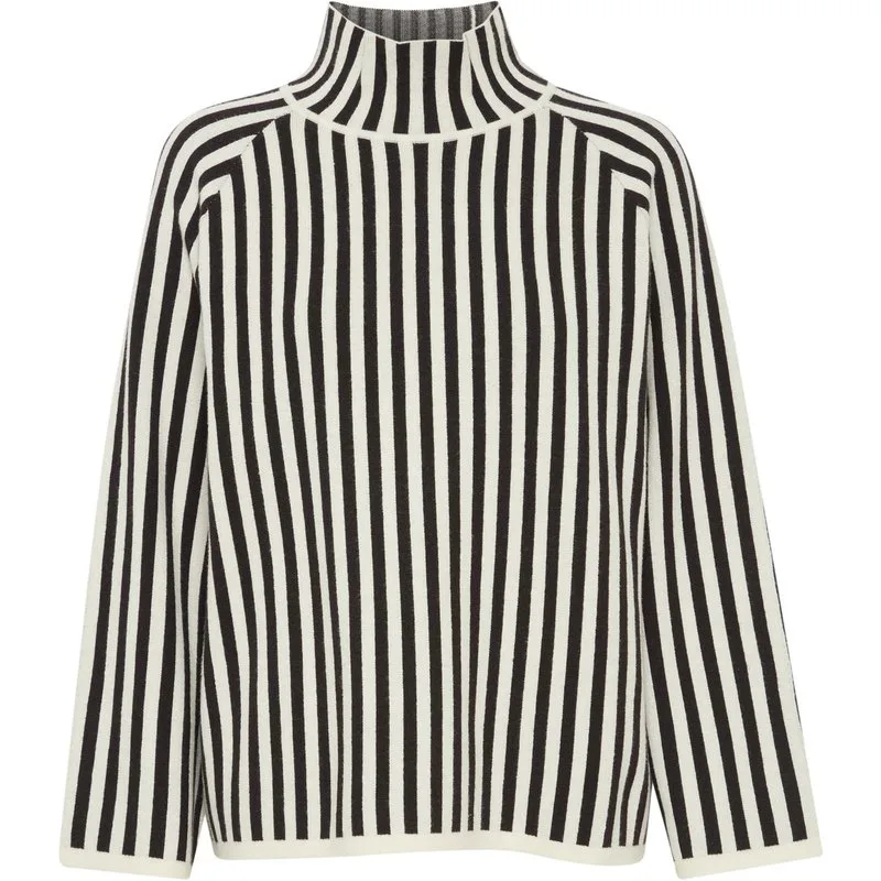 Design: Rechte zoom, Raglanmouwen; Materiaal: Knitwear; Halstype: Opstaande kraag; Motief: Gestreept; Extra's: All-over patroon, Met textuur, Voelt zacht aan; Pasvorm: Losse pasvorm; Armlengte: Lange mouw; Lengte: Normale lengte