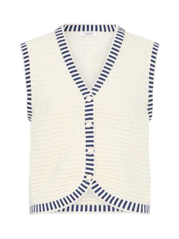 b.young Gebreide bodywarmer ‘BYMIKALA’ crème / blauw Prijzen