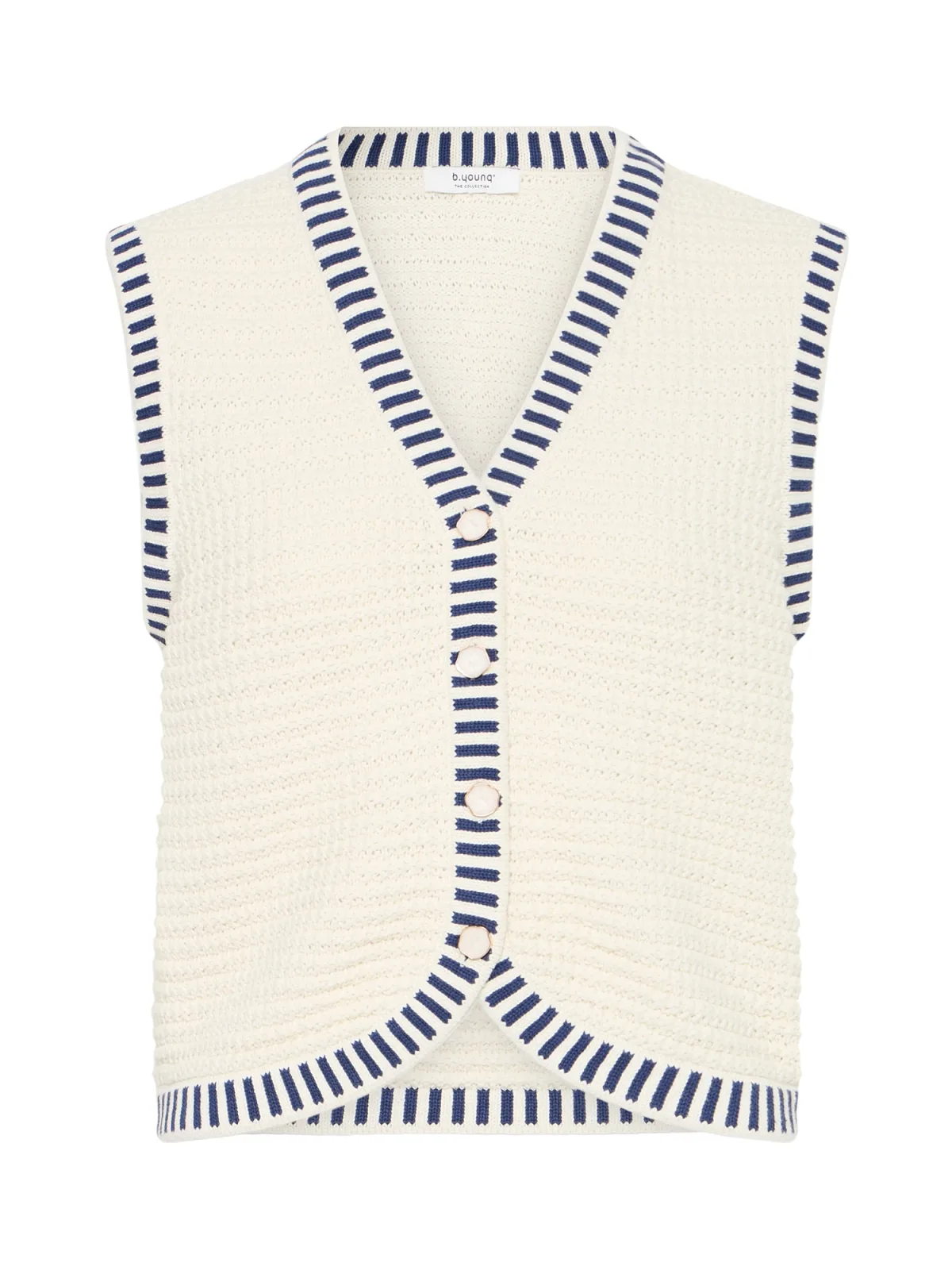 Specificaties: b.young Gebreide bodywarmer ‘BYMIKALA’ crème / blauw