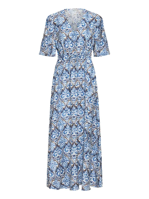 Design: Gevoerde zoom/rand, Zijdelingse inkepingen; Materiaal: Viscose; Halstype: V-hals; Extra's: All-over patroon; Lengte: Lang/maxi; Pasvorm: Normale pasvorm; Armlengte: Halve mouw
