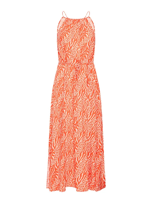 Design: Gevoerde zoom/rand, Rechte zoom, Zijdelingse inkepingen; Materiaal: Viscose; Soort bandjes: Spaghettibandjes; Details: Gedrapeerd; Extra's: Verstelbare taille, All-over patroon, Gladde stof; Lengte: 7/8 lengte; Pasvorm: Normale pasvorm; Armlengte: Mouwloos