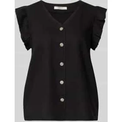 dames blouse van B.Young;mix van linnen en viscose;regular fit;Model 'FALAKKA';ruche;V-hals;knoopsluiting;Ruglengte bij maat 36: 34 cm;Mouwlengte bij maat 36: 5 cm