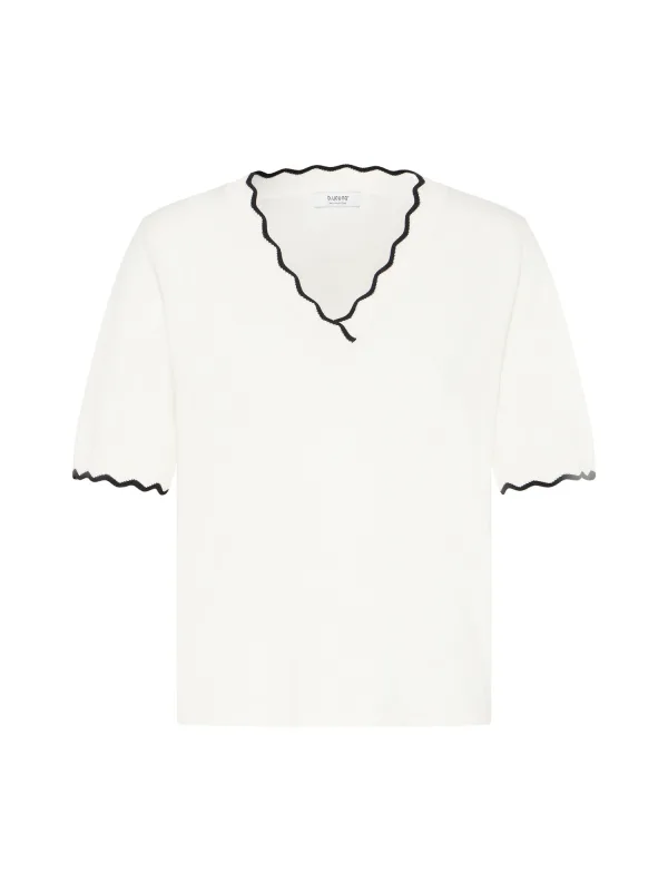 Design: Geribbelde kraag, Geribd ceintuurtje, Contrasterende inserts; Materiaal: Knitwear; Halstype: V-hals; Motief: Effen; Extra's: Fully fashioned, Met textuur; Pasvorm: Normale pasvorm; Armlengte: Kwartmouw; Lengte: Normale lengte