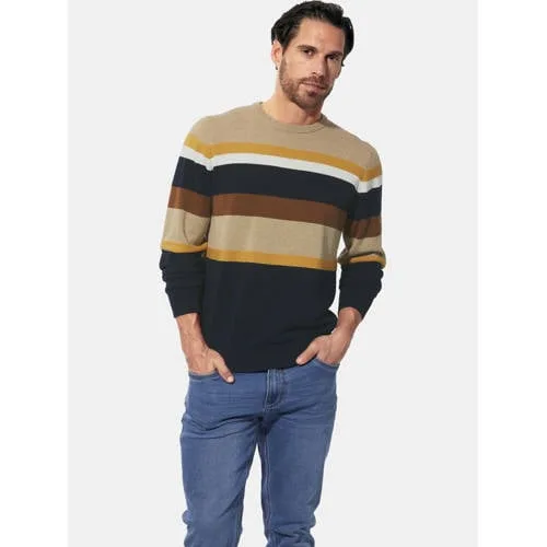 BABISTA inspireert al 30 jaar modebewuste mannen met gevoel voor kwaliteit. De CALDEN-trui van BABISTA voegt een vleugje kleur toe aan je garderobe met zijn gestreepte patroon met hoog-laag effect en zal ieders aandacht trekken. De elegante strepen variëren in breedte en geven deze herentrui een dynamische look. De geribde ronde halslijn rondt het ontwerp discreet af, terwijl de comfortabele elastische manchetten de trui bijzonder comfortabel maken. Geniet van het hoge draagcomfort van deze moderne modeklassieker. Materiaal 100% katoen. Machinewasbaar.