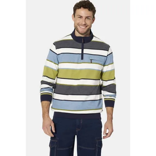 BABISTA inspireert al 30 jaar modebewuste mannen met gevoel voor kwaliteit. Ben je op zoek naar een sweatshirt dat zowel functioneel als modieus is? Dan is het MELRIN sweatshirt van BABISTA misschien iets voor jou. Deze top heeft een omgeslagen kraag met ritssluiting, een aantrekkelijk patroon van horizontale strepen en een functionele zak met ritssluiting op de borst. Elastische manchetten zorgen voor een perfecte pasvorm. Bovendien hoeft het sweatshirt niet gestreken te worden, zorgt het voor een aangenaam lichaamsklimaat, is het ultralicht en bestand tegen pluizen, waardoor het ideaal is voor dagelijks gebruik. Het MELRIN sweatshirt is een veelzijdige essential die zowel comfort als stijl biedt.