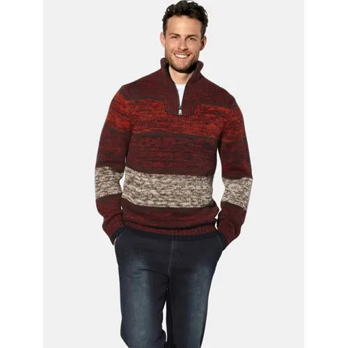 BABISTA inspireert al 30 jaar modebewuste mannen met gevoel voor kwaliteit. De CARMILO-trui van BABISTA houdt je warm en stijlvol op koelere dagen. De herentrui maakt indruk met zijn tijdloze gebreide ontwerp en een halve rits aan de opstaande kraag. Het gestreepte patroon met veelkleurige look wordt harmonieus opgefrist door contrasterende details op de elastische manchetten en de binnenkant van de geribde kraag. Verwen jezelf met deze trui om zelfs bij koele temperaturen perfect gekleed te zijn. Materiaal 70% polyacryl, 30% wol. Machinewasbaar.