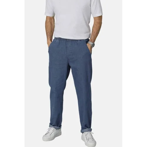 Ontdek de perfecte metgezel voor elke dag met de instapjeans VIENTTO voor heren. De comfortabele elastische tailleband rondom en de hoogwaardige stretchkwaliteit bieden optimale bewegingsvrijheid en onverslaanbaar draagcomfort. Het doordachte vakmanschap omvat 2 zijzakken en een achterzak met knoop – functioneel en stijlvol tegelijk. Deze jeans is meer dan alleen kleding; het is een uiting van zelfvertrouwen en stijl. Ideaal voor mannen die waarde hechten aan comfortabele elegantie. Materiaal 76% katoen, 23% polyester, 1% elastaan.