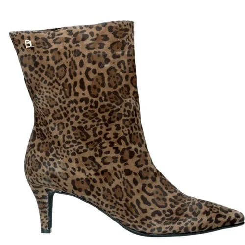 Babouche Alison-2 suède enkellaarzen met panterprint bruin