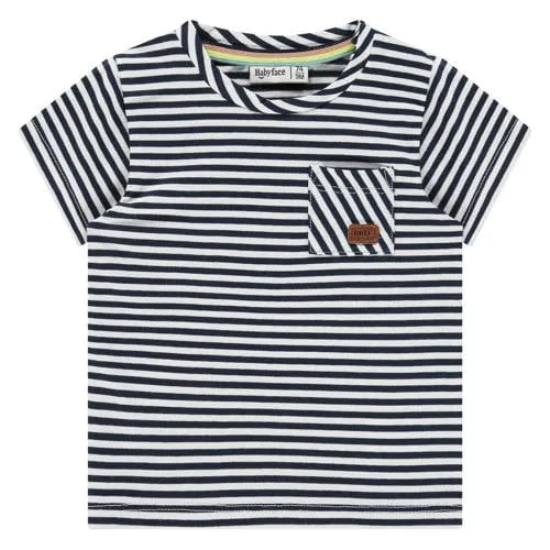 Dit zachte jongens T-shirt van katoen van Babyface is een praktische basic voor elke dag. De blauw/witte strepen geven een frisse, speelse look en de rechte pasvorm zorgt ervoor dat je kleintje zich vrij kan bewegen. Dankzij de korte mouwen is dit shirt ideaal voor warmere dagen of om ergens onder te dragen in een laagjesoutfit.Comfortabel en handig in het dagelijks leven Gemaakt van 95% katoen voor een zachte touch op de gevoelige babyhuid Toegevoegde stretch voor extra bewegingsvrijheid tijdens spelen en kruipen Drukknoopsluiting bij de hals, waardoor aan- en uitkleden gemakkelijk gaat Rechtvallend model dat niet knelt rond buik en armpjes Blauw/wit streepdessin met borstzak voor een speels accent Geschikt voor de maatboog Baby en New Born, ideaal vanaf de eerste dagenIdeaal shirt voor elke dagDit Babyface T-shirt past goed bij een comfy jogger, een korte broek of een zacht broekje. Door de streepprint en de rustige kleuren is het eenvoudig te combineren met andere items uit de kledingkast van je baby. Het shirt kan in het dagelijks leven gedragen worden, van thuis op de bank tot een bezoekje aan familie.Babyface: aandacht voor de allerkleinstenBabyface ontwerpt kleding speciaal voor baby’s en jonge kinderen, met veel aandacht voor pasvorm en draagcomfort. De materialen voelen zacht aan, sluiten mooi aan rond het kleine lichaam en houden rekening met de behoeften van ouders in het dagelijks gebruik. Zo wordt elke dag net wat makkelijker en ziet je kleintje er verzorgd uit.Een praktisch basis T-shirt dat comfort en een verzorgde uitstraling combineert voor je kindje.
