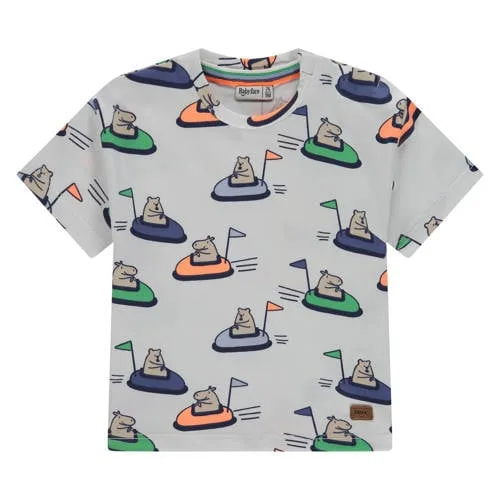 Dit Babyface jongens T-shirt is een zachte basic voor elke dag, met een speelse all over print in lichtgrijs, blauw en groen. De korte mouwen en ronde hals maken het shirt geschikt voor dagelijks dragen, van de eerste maanden tot de peutertijd. Dankzij het comfortabele stretchmateriaal kan je kleintje vrij bewegen, kruipen en spelen.Comfortabel shirt met speelse print Gemaakt van 95% katoen en 5% elastaan voor een zachte stof met lichte stretch Lichtgrijs shirt met all over print in blauw en groen voor een frisse, kinderlijke uitstraling Korte mouwen, ideaal voor onder een vest of gewoon zo op warmere dagen Ronde hals die prettig aansluit bij de nek en makkelijk over het hoofd gaat Geschikt voor baby en new born, afgestemd op de Daily collectie van Babyface Geen borstzak of extra details, waardoor het shirt gemakkelijk te combineren isPraktisch in het dagelijks aankledenDit T-shirt past bij veel broeken en rompers in de kledingkast van je baby. De soepele stof is fijn bij het aankleden en voelt zacht aan op de huid. Praktisch als basislaag onder een trui of vest, of gewoon als luchtig shirt op een warme dag.Babyface: herkenbare stijl voor de allerkleinstenBabyface ontwerpt kinderkleding speciaal voor de allerkleinsten, met aandacht voor zachte materialen en draaggemak. De prints en kleuren zijn afgestemd op elkaar, zodat je eenvoudig setjes kunt maken binnen dezelfde collectie. Zo bouw je stap voor stap een praktische en complete garderobe op voor je baby.Dit T-shirt is geschikt als zachte, makkelijk te combineren basic voor elke dag.