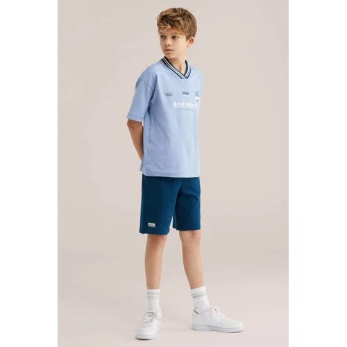 Voor kids die geen moment stilzitten is deze WE Fashion Bad Boys jongens sweatshort een fijne basic voor elke dag. De regular fit valt comfortabel recht langs de benen en geeft genoeg bewegingsvrijheid om te rennen, klimmen en voetballen. De effen blauwe kleur is makkelijk te combineren met T-shirts en hoodies uit zijn kast.Praktische details voor drukke dagen Gemaakt van katoen, voelt zacht aan op de huid en is geschikt voor dagelijks dragen Elastische tailleband met contraststreep en aantrekkoordjes voor een goede, verstelbare pasvorm Steekzakken voor en een zak achter om kleine spulletjes bij zich te houden Effen blauwe kleur met subtiele 'bad boys' tekst op de pijp voor een stoere touch Regular fit sweatshort, ideaal voor peuters, kleuters, schoolkinderen en tienersKlaar voor speeltuin, school en voetbalveldDeze korte broek past bij drukke dagen vol bewegen. Naar de speeltuin, een potje voetbal of een ontspannen dag thuis, deze short trek je zo aan dankzij de elastische tailleband. Een T-shirt en sneakers erbij en hij is klaar om de deur uit te gaan.Bad Boys van WE FashionDe Bad Boys lijn van WE Fashion is gemaakt voor actieve jongens die graag hun eigen stijl laten zien. Verwacht doordachte pasvormen, fijne materialen en designs die goed aansluiten op het dagelijks leven. Zo krijgt hij kleding waar hij zich vrij in kan bewegen en die er tegelijkertijd verzorgd uitziet.Een comfortabele sweatshort waar hij keer op keer naar grijpt op drukke, speelse dagen.