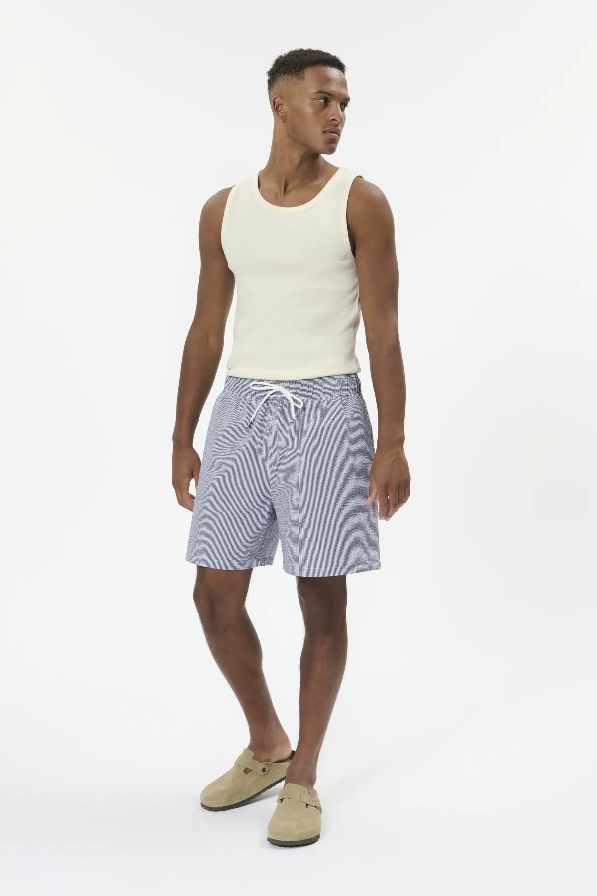 Shorts met rechte pasvorm, gestructureerde look en elastische tailleband. Praktische koordsluiting en zijzakken voor een ontspannen stijl.