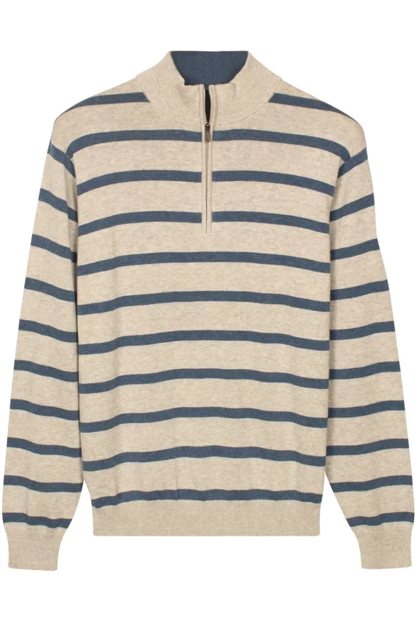 Baileys Half-Zip Sweater beige, Gestreept