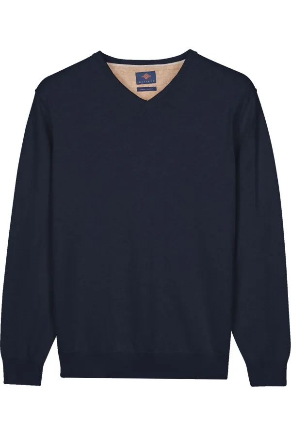 Baileys Heren Trui Vhals Pullover Pima Katoen Dark Blue 61810069
