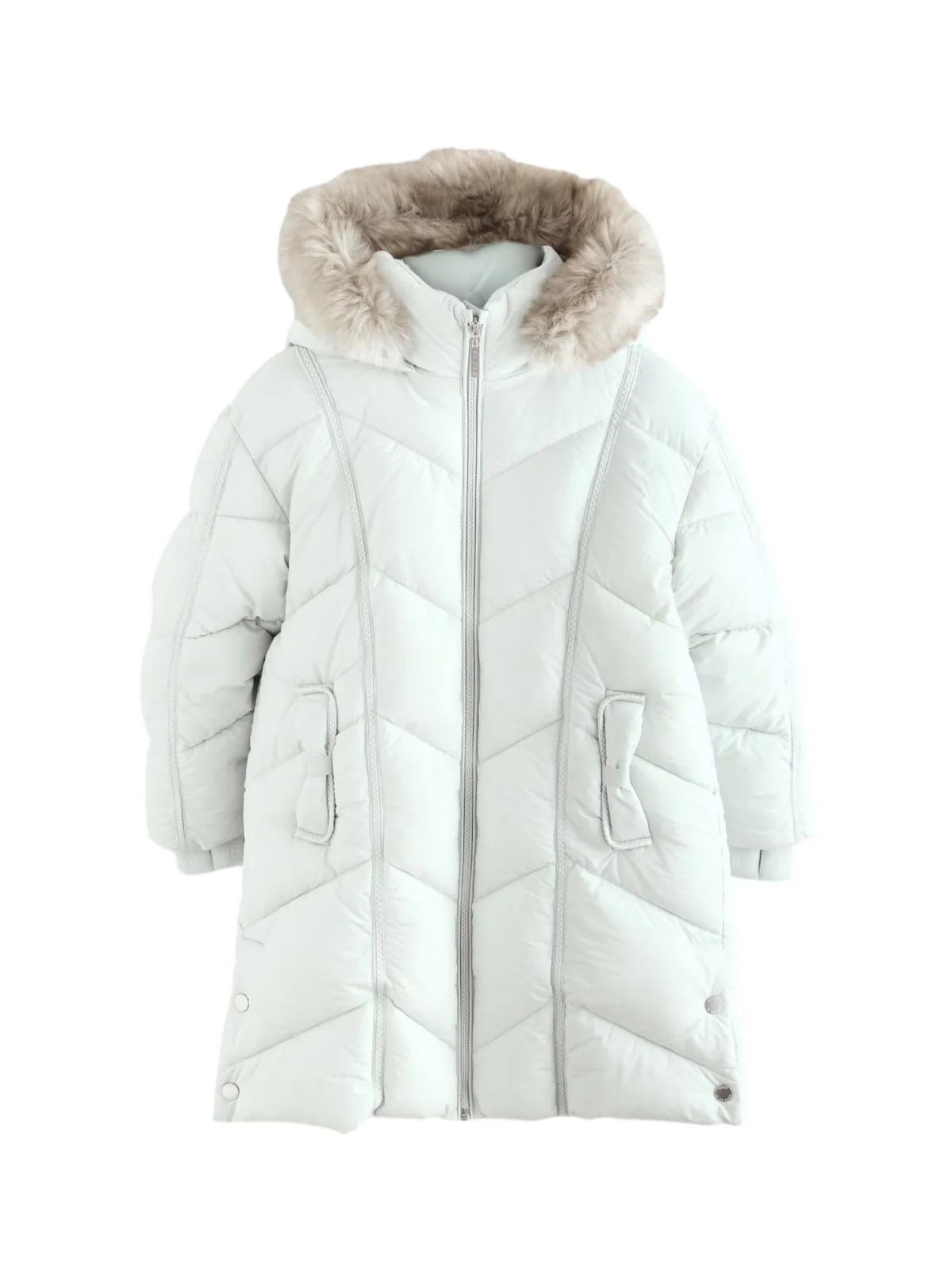 Type mantel: Gewatteerde jas; Design: Drukknopsluiting, Drukknopen, Met capuchon, Staande kraag, Zakken aan de zijkant, Elastische inzetstukken; Type sluiting: Ritssluiting; Voering: Warm gevoerd; Motief: Effen; Extra's: Stiksels, Op staal naden, Met faux bont trim; Pasvorm: Normale pasvorm