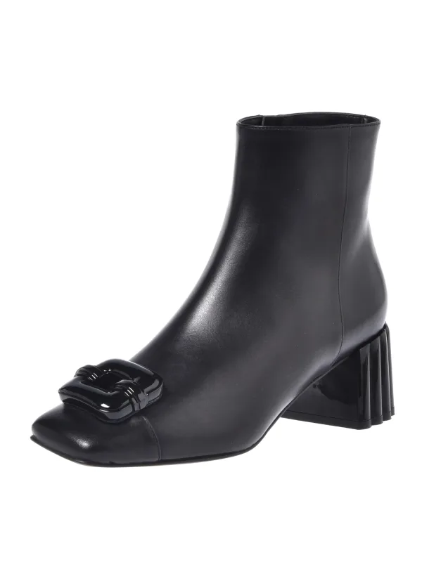 Design: Ritszakken aan de zijkant; Type sluiting: Ritssluiting; Type hak: Blokhak; Materiaal: Leer; Motief: Effen; Materiaal: Glad leer; Schoenneus: Vierkante neus; Extra's: Op staal naden; Hakhoogte: Middelhoge hak (3-7 cm)