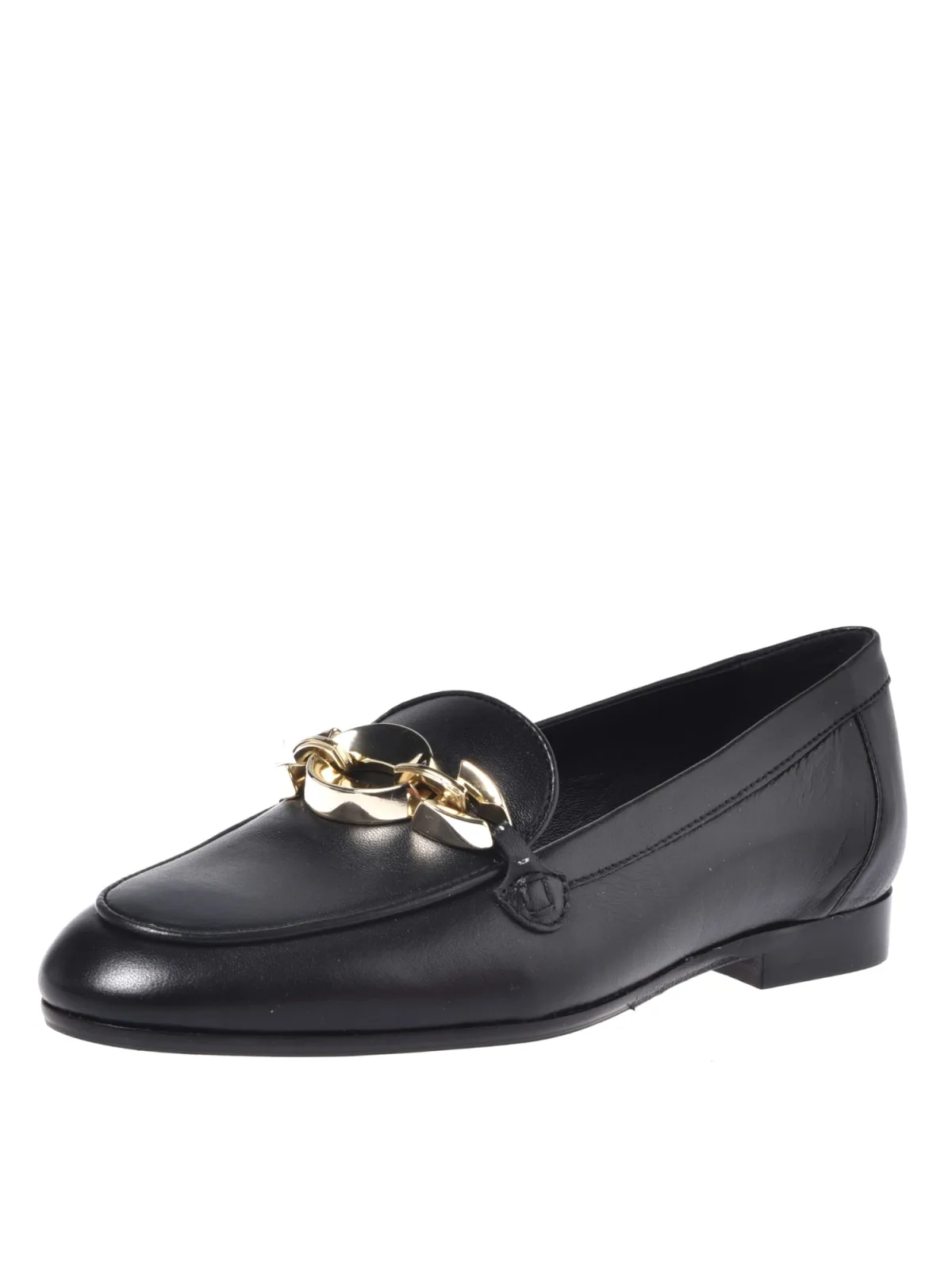 Design: Versterkte hak; Type sluiting: Slip; Type hak: Blokhak; Materiaal: Leer; Motief: Effen; Materiaal: Glad leer; Schoenneus: Ronde neus; Extra's: Applicaties, Op staal naden; Hakhoogte: Platte hak (0-3 cm)
