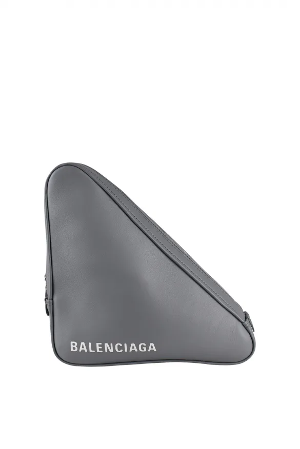 Clutch Triangle M Balenciaga in grijs leer.Ritssluiting.Wit logo gedrukt op de voorkant.Afmetingen: breedte 21 cm x hoogte 21 cm x diepte 5 cm.Gemaakt in Italië.