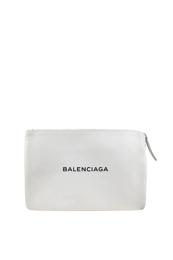 Balenciaga computertas voor dagelijks gebruik.Wit generfd leer.Zwart logo.Ritssluiting.Gemaakt in Italië.