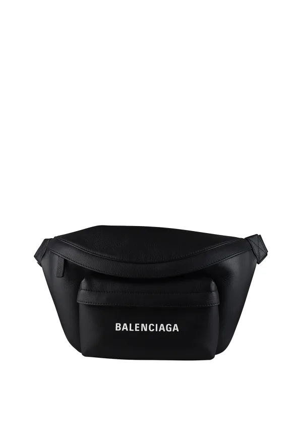 Everyday bag Balenciaga van zwart kalfsleder.Hoofdritssluiting.Wit Balenciaga logo gedrukt op voorvak.Voorvak met ritssluiting.Kan in de taille worden gedragen.Zwarte riem met clip.Afmetingen: 33 cm x 18 cm x 3 cm.Made in Italy.