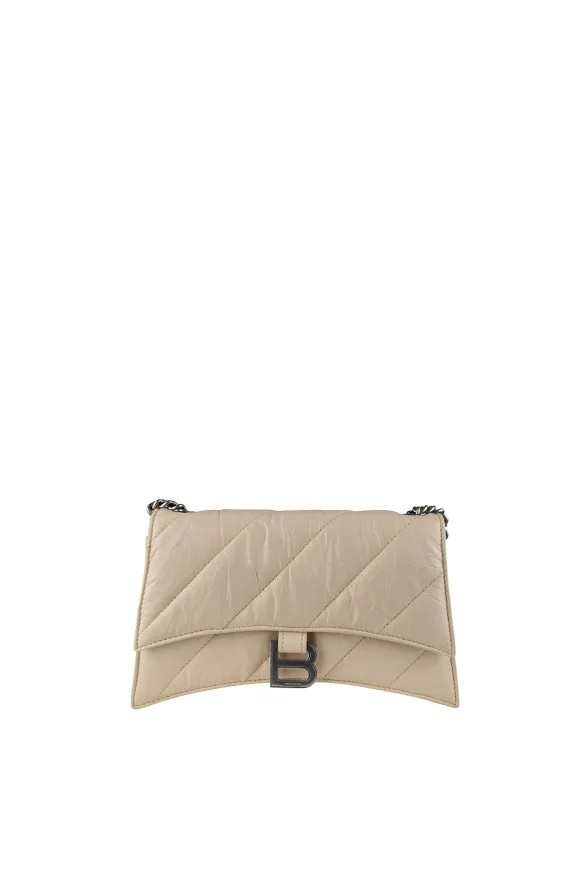Crush Chain XS tas Balenciaga in zand-beige gewatteerd leer.Zilveren ketting schouderriem.Drukknoopsluiting.Handtekening B in zilverkleurig metaal.Leren interieur.Verschillende binnenvakken, waaronder één met ritssluiting.Afmetingen: 21,5 cm x 11,5 cm x 5 cm.Made in Italy.