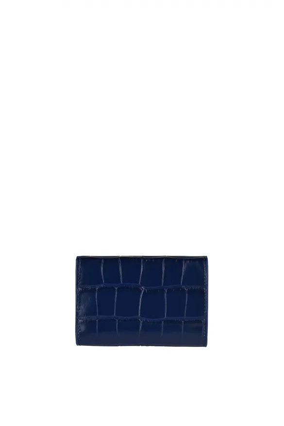 Balenciaga mini-portemonnee van marineblauw leer met krokodilleneffect.Envelopstijl.Wit 'Balenciaga'-logo op de voorkant.Afgeronde uiteinden.biljetvak.2 kaartsleuven.Geïntegreerde portemonnee met drukknoopsluiting.100% leer.Gemaakt in Italië.