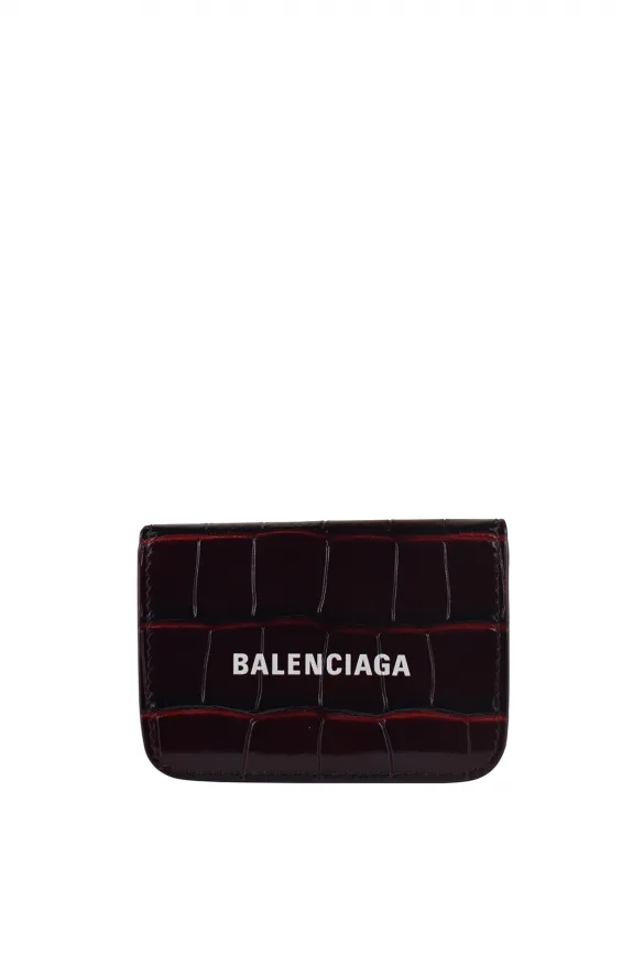 Cash Mini Balenciaga-portemonnee van bordeauxrood leer met krokodilleneffect.Wit 'Balenciaga'-logo op de voorkant.Afgeronde uiteinden.biljetvakje.Geïntegreerde portemonnee met drukknoopsluiting.Gemaakt in Italië.