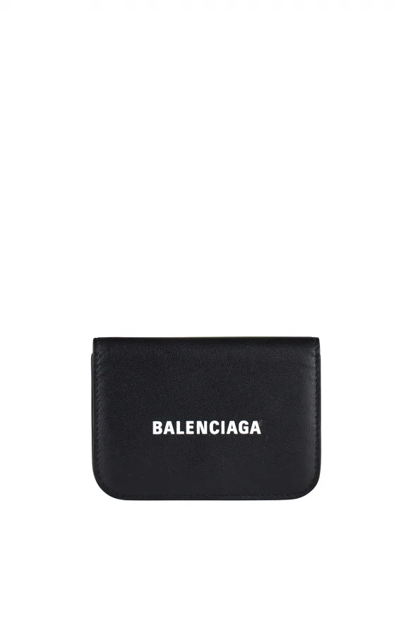 Balenciaga mini-portemonnee van zwart leer.Wit 'Balenciaga'-logo op de voorkant.Afgeronde uiteinden.Bak voor briefgeld.3 kaartsleuven.Geïntegreerd portemonneetje met druksluiting.Afmetingen: B6,9xH9,4xL3,8 cm.Gemaakt in Italië.