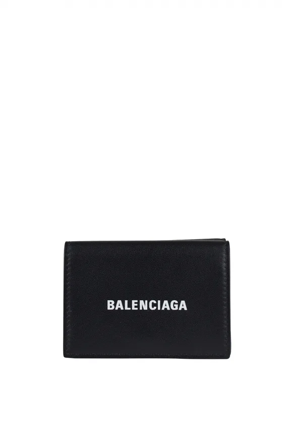 Balenciaga mini-portemonnee van zwart generfd leer.Wit 'Balenciaga'-logo op de voorkant.Afgeronde uiteinden.Portemonneevak.3 kaartsleuven.Geïntegreerd portemonneetje met druksluiting.Afmetingen: 6,9 x 9,4 x 3,8 cm.Gemaakt in Italië.