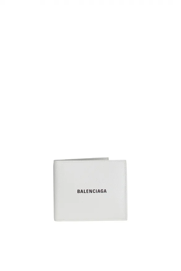 Balenciaga portemonnee van wit leer.Zwarte logoprint.Vakken voor creditcards.Hoofdvak voor briefgeld.Afmetingen: 11 cm x 10 cm.100% leer.Gemaakt in Italië.