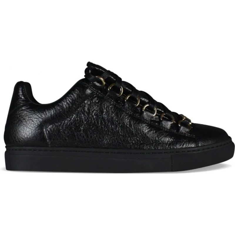 Balenciaga Arena zwarte sneakers laag.Getextureerd lamsleer.Metallic details.Witte rubberen zool.Vetersluiting.100% leer.Gemaakt in Italië.