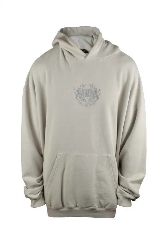 Balenciaga beige katoenen sweatshirt met capuchon. Toon-op-toon geborduurd BB-logo in het midden.Geribbelde randen.Lange mouwen. Kangoeroezak.Oversized snit.