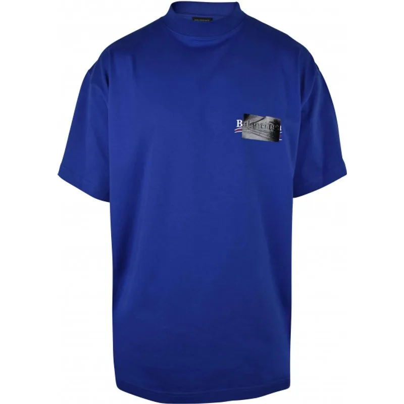 Koningsblauw Balenciaga politiek Gaffer T-shirt.Artwork Gaffer-logo op borst en rug.Korte mouwen.Oversized snit.Ronde kraag.100% katoen.Unisex-model.