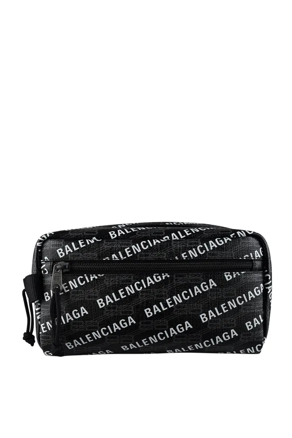 Toilettas Balenciaga van zwart canvas.Wit Balenciaga logo diagonaal op de tas gedrukt.Grijs BB logo diagonaal op de tas gedrukt.Ritsvak aan de voorkant.Hoofdritssluiting.Ritsvak aan de binnenkant.Afmetingen: 23 cm x 14 cm x 11 cm.Made in Italy.