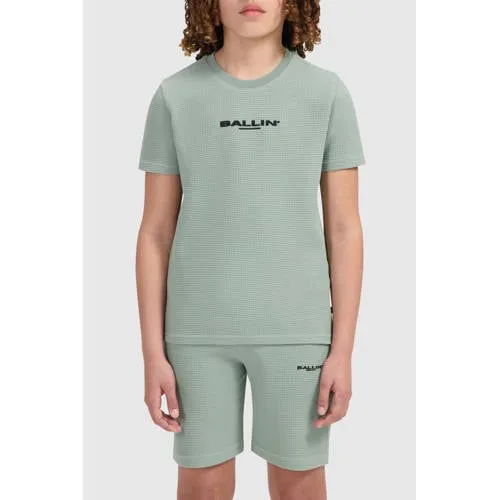 Dit T-shirt van Ballin is perfect voor jongens. Het heeft een regular fit, korte mouwen en een ronde hals. Gemaakt van 100% katoen, voelt het comfortabel aan op de huid. De grijsgroene kleur en textuur maken het compleet.