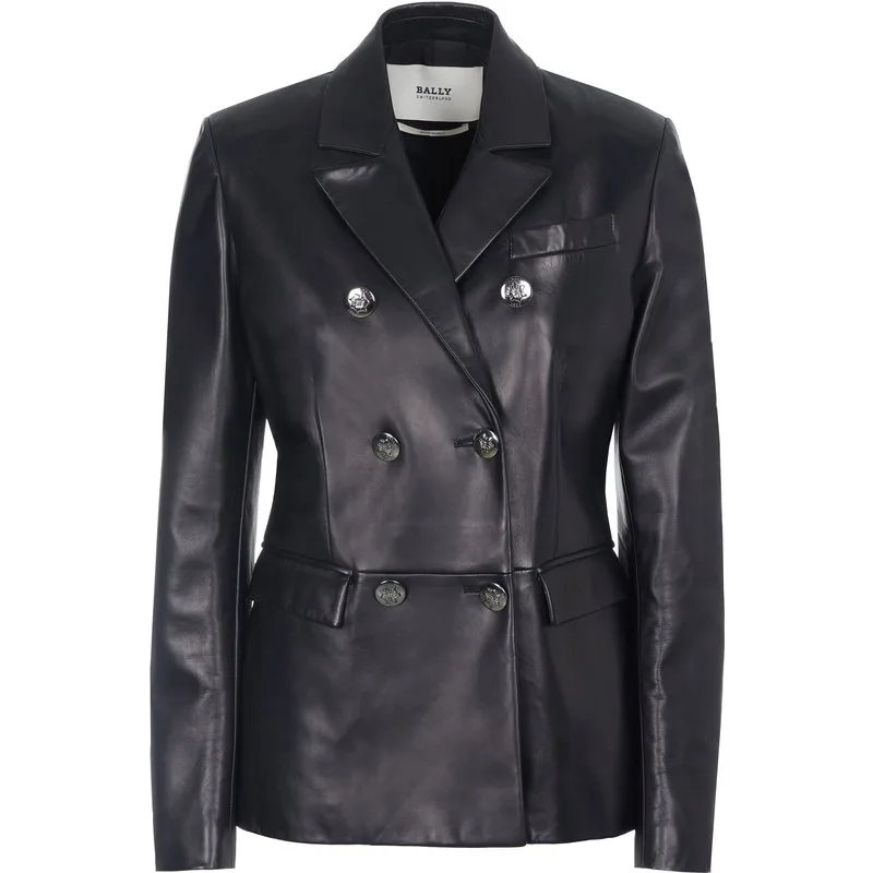 100% Lamsleer; Bally blazer; Model: 59775122524 F000; Hoogwaardig vervaardigd; 100% zacht lamsleer; Reverskraag; Twee klepzakken, één borstzak; Dubbelgeknoopt met 6 knopen; Bally logo-details